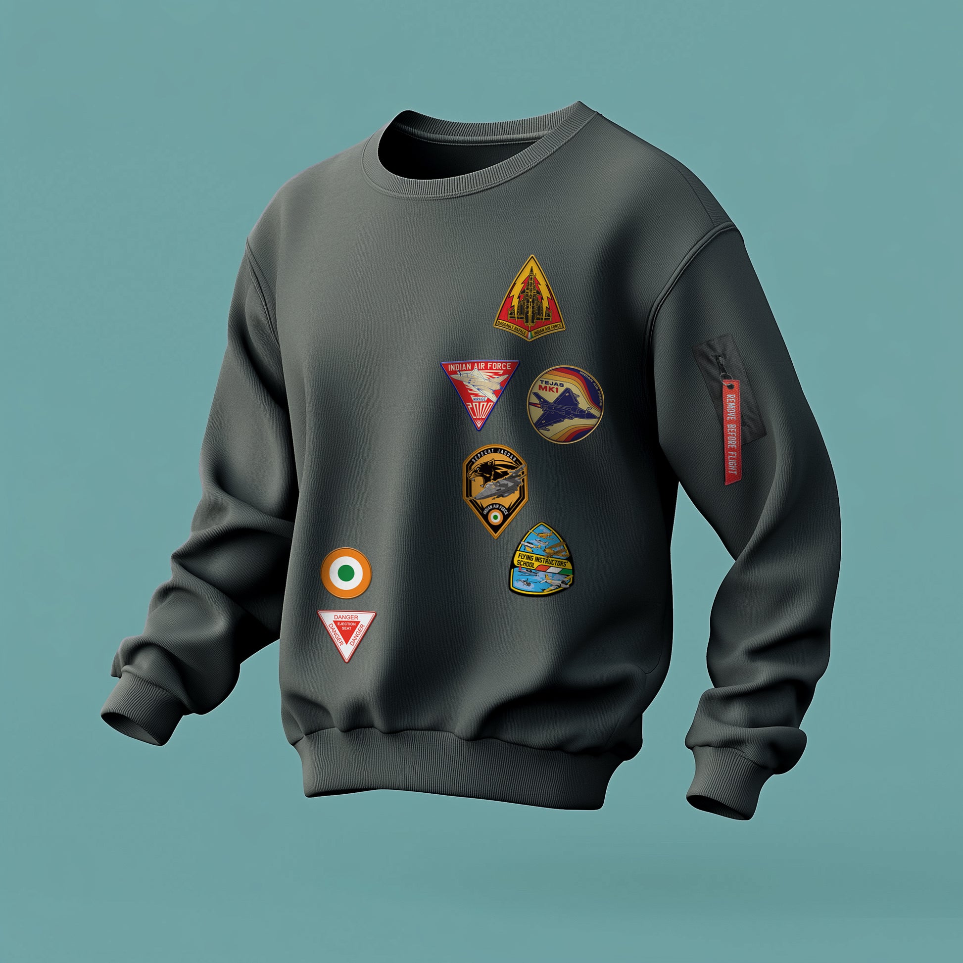Get ready to experience the ultimate Air Force pride with our Grey Air Force Legacy Sweatshirt. This unique sweatshirt features a collection of iconic badges that celebrate the power and legacy of the Indian Air Force's finest aircraft and institutions.
