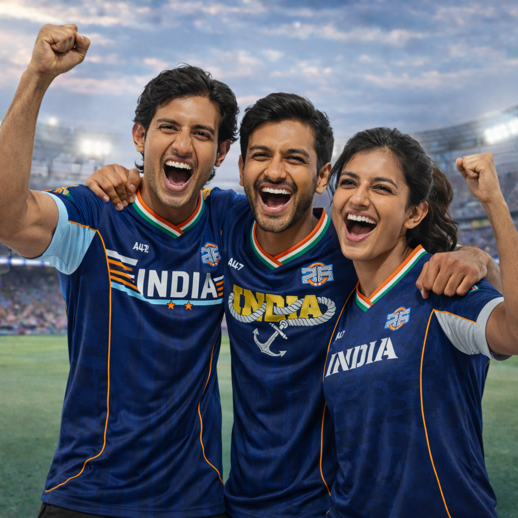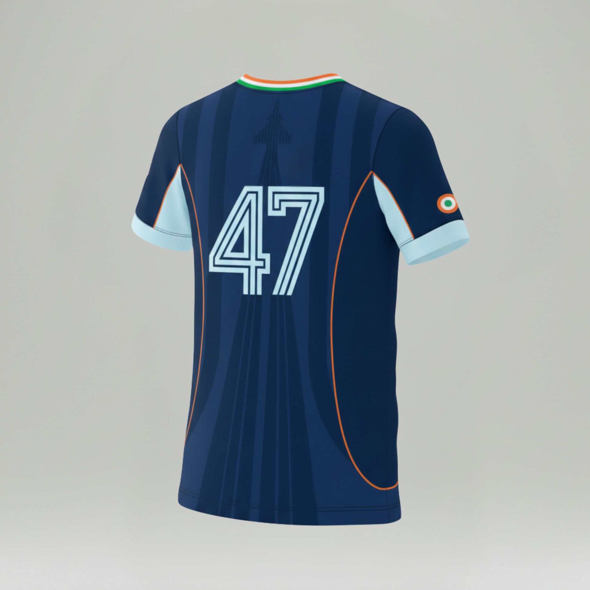 The tricolour neckline anchors the design in national identity- a reminder that whether it’s a roar from the stands or a mission above the clouds, the purpose remains the same: India first.