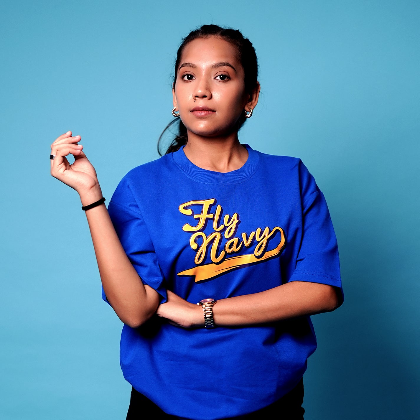Indian Naval Aviation: Fly Navy Blue Oversized Tee