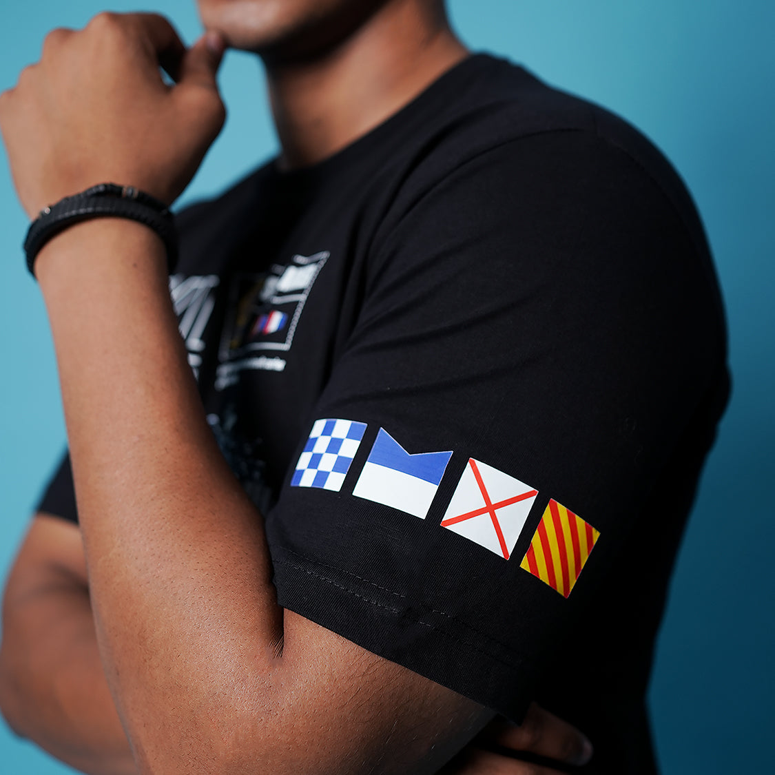 Nautical flags on the sleeves further emphasize its naval inspiration. The back keeps it sleek with a minimalistic "AIRBORNE" print and an official naval aviation badge on the sleeve. Designed for aviation enthusiasts and military supporters, this exclusive limited-edition tee is a statement of power, resilience, and pride, making it a must-have for those who appreciate bold and meaningful fashion.