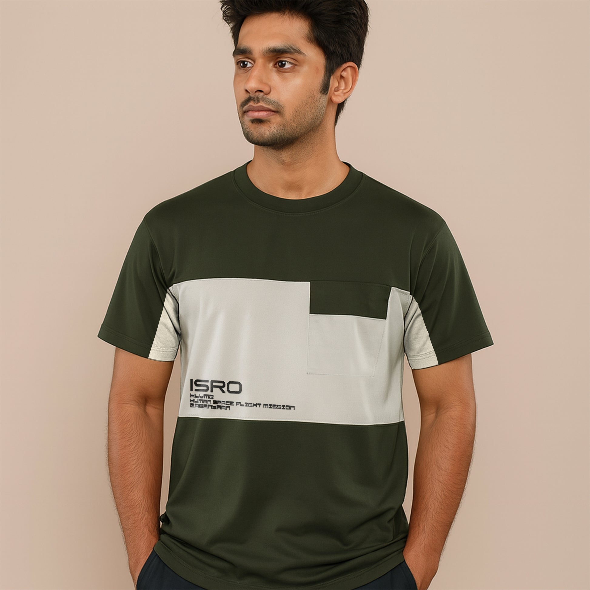 A tribute to India’s space legacy, this ISRO HLVM3 Panel T-Shirt blends minimalism with bold design. The deep green base symbolizes exploration, while the crisp white chest panel adds a striking contrast. A functional pocket completes the look, making it both stylish and practical.
